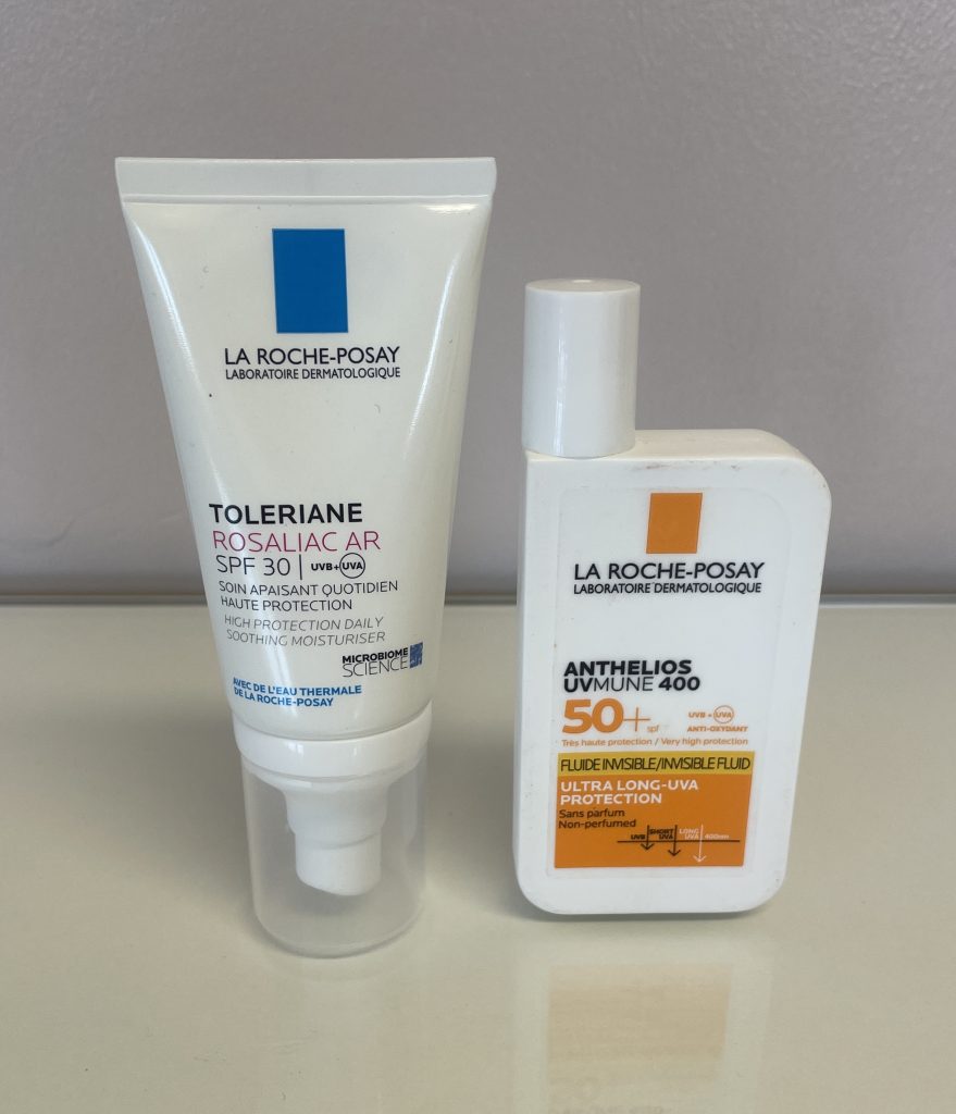 SPF has been my biggest struggle so far. After lots of research I found mineral SPFs were most recommended for people with rosacea however many I tried still did flare up my skin. Both La Roche Posay Toleriane Rosaliac AR SPF30 and La Roche Posay Anthelios UVMune 400 Invisible Fluid Non-Perfumed Suncream SPF50 seemed to work best for me but I do sometimes still get flare ups from using these. As much as it’s advised to wear SPF every day for myself it’s not possible so I only wear SPF on the days I go outside with no make-up on. When I’m wearing make up I try to avoid harsh sunshine and count on the SPF that’s added into the make-up. I’m aware it’s not enough protection but unfortunately that’s just what I have to do to prevent flare ups.